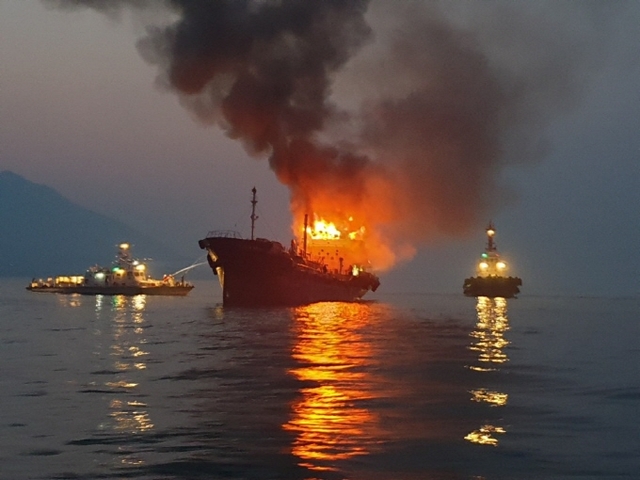 오늘 오전 5시 38분경 여수시 오동도 동쪽 약 5km 앞 해상에서 석유제품운반선에서 화재가 발생했다.