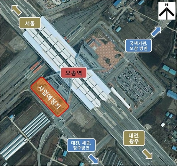 ▲KTX오송역 버스환승센터 위치도 ⓒ청주시