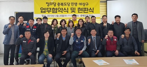 20일 정의당 충북도당은 민주노총 충북본부와 업무협약을 맺고 민생비상구 개소식을 진행했다.