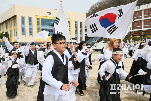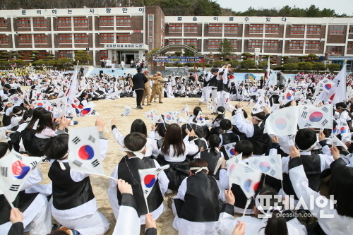 기미년독립만세운동재현추진위원회는 21일 사천초등학교 운동장에서 박성재 사천시 부시장과 여상규 국회의원, 이삼수 시의회의장, 도의원, 시의원, 광복회 회원, 학생 등 1200여 명이 참석한 가운데 ‘3·1운동 제100주년 기념 기미년 독립만세운동 재현행사’를 실시했다.