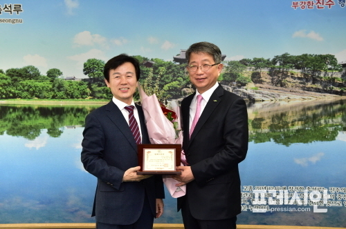 조규일 진주시장은 지난 22일 진주시청에서 박상우 한국토지주택공사 사장에게 명예시민증을 수여했다.