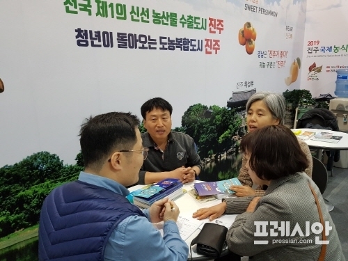 경남 진주시는 서울 양재동 aT센터에서 개최한 ‘2019 성공귀농 행복귀어 박람회’에 참가하여 귀농·귀촌 상담과 농특산물을 전시·판매하는 시간을 가졌다고 24일 밝혔다.