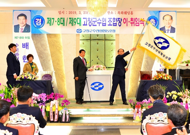 26일 고창수협에 따르면 이날 열린 회장 이취임식에는 퇴임하는 7·8대 배한영 조합장과 신임 김충 조합장이 나란히 단상에 올라 조합장직 인수인계가 이뤄졌다.