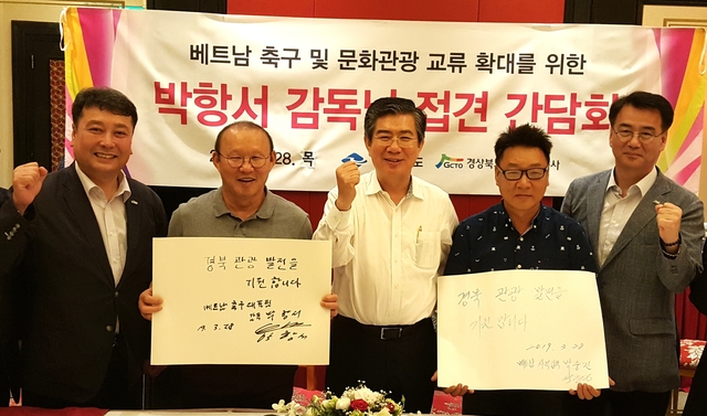 경상북도문화관광공사(이하 공사) 김성조 사장은 28일~29일 양일간 베트남 하노이 대우호텔에서 박항서 베트남 축구대표팀 감독과 만났다.