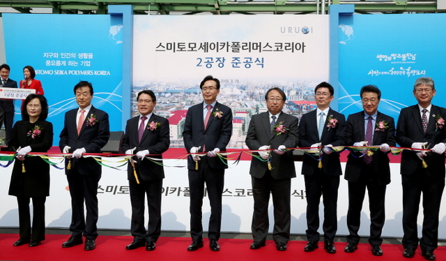 이날 준공식에는 오가와 이쿠조 스미토모세이카 본사 사장, 아리모토 타쿠미 스미토모세이카폴리머스코리아 사장, 윤병태 전라남도 정무부지사, 권오봉 여수시장, 강정희 도의원, 관계사 임직원 등 70여 명이 참석했다.