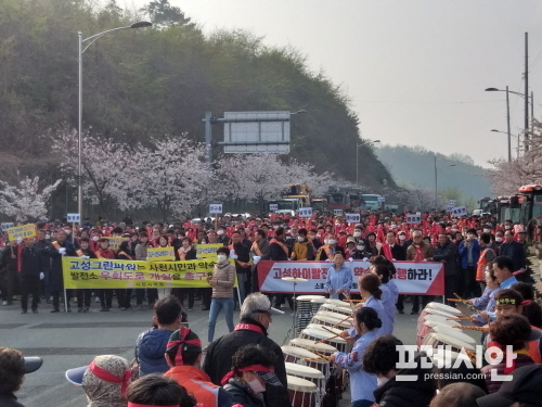 이번 행사는 향촌동 난타팀과 남양동 풍물팀의 공연을 시작으로 참가자들에게 집회의 취지와 그 동안의 경과 설명한 후 “고성그린파워(GGP)는 시민과 약속한 발전소 우회도로 개설에 적극 나서라”는 구호를 외치며 발전소를 건설하고 있는 고성군 하이면 경계지점까지 가두시위를 벌였다.