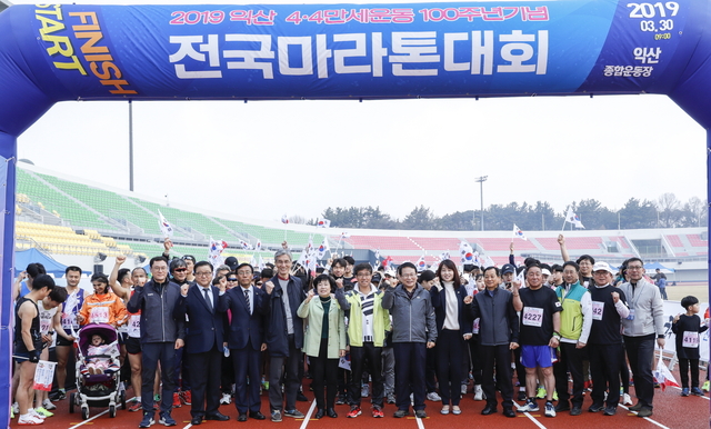 100년 전 일본의 제국주의적 만행에 저항하고자 진행됐던 만세운동을 기념하는 익산 4·4만세운동 100주년 기념 전국마라톤대회가 30일 익산종합운동장과 익산시 일원에서 성황리에 개최됐다.