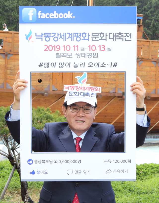백 군수는 낙동강 대축전 개최 시기와 장소를 알리는 이색 홍보판과 모자를 활용해 기념 촬영을 하며 낙동강 대축전 홍보에 나섰다.