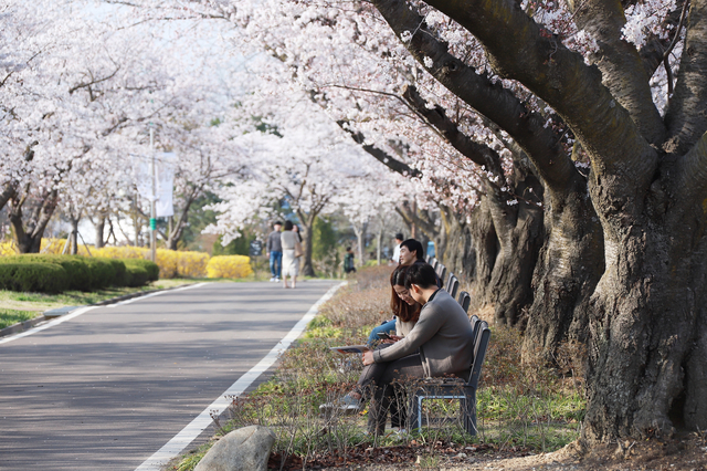 3월의 마지막 주말 벚꽃이 만개한 경주문화엑스포공원을 비릇해 보문단지와 선도산 일대 등은 상춘객들로 인해 ‘인산인해’를 이루고 있다.