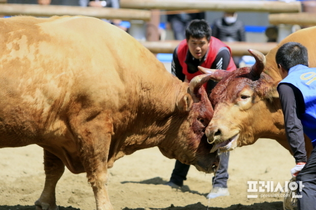 이번 소싸움대회는 백두, 한강, 태백 등 3체급에 걸쳐 전국 최고 수준인 9천200여만원의 시상금을 내걸고 체급별 토너먼트로 진행했다.