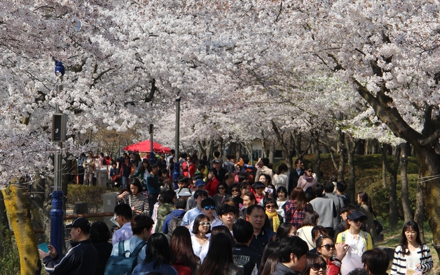 연일 상춘객들의 발길이나 차량으로 홍수를 이루고 있다.