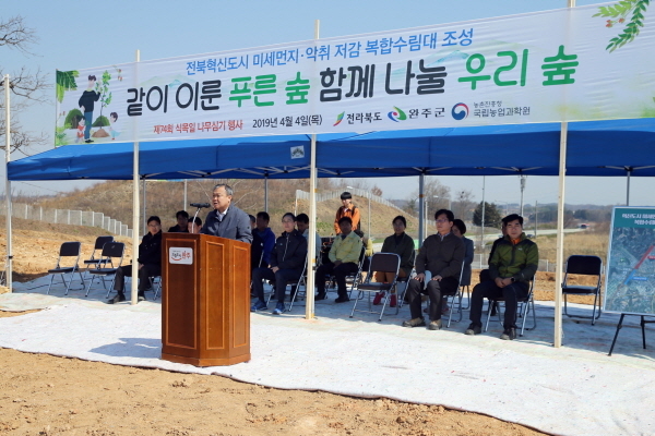 제74회 식목일을 앞둔 4일 오전, 농촌진흥청 국립농업과학원에서 열린 나무 심기 행사에 참석한서 황규석 농촌진흥청 차장이 인사말을 하고 있다. ⓒ농촌진흥청