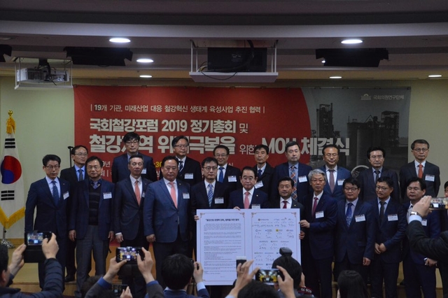 지난 5일 국회 의원회관 제2소회의실에서 열린 협약식에는 ‘국회철강포럼(공동대표의원 박명재·어기구)’을 비롯해 행사 공동주최 기관인 경북도·포항시·한국철강협회와 함께 당진시, 광양시, 아산시, 충청남도, 전라남도, 포항테크노파크, 경북테크노파크, 충남테크노파크, 강릉 원주대학교, 공주대학교, 연세대학교, 포스텍, 재료연구소, 한국생산기술연구원, 포항산업과학연구원 등 총19개 기관이 참여했다.