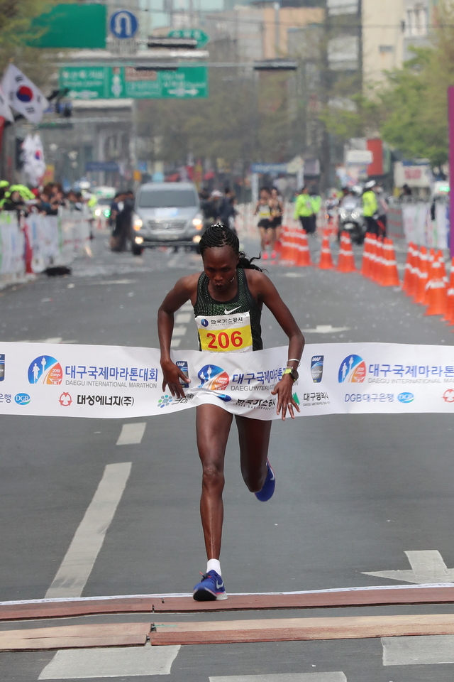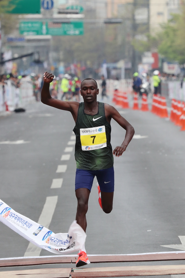 7일 대구시내 일원에서 열린 '2019대구국제마라톤대회'에서 필렉스 킵치르치르 킵로티치(케냐)선수가 2시간 5분 33초 대회신기록으로 국제 남자부 우승을 차지하면서 대회가 성료됐다.