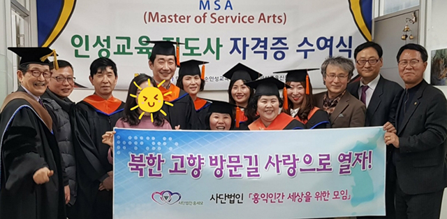 이 기간 동안 탈북민들은 매주 토요일 3시간씩 10주간의 진지한 교육과정을 마치고 이달 초 인성교육지도사 자격을 취득했다.