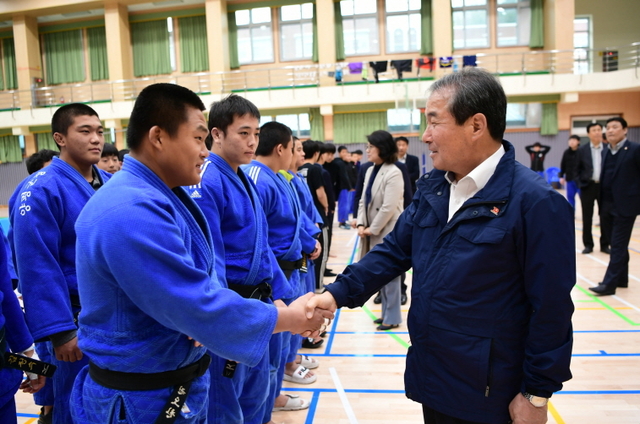 지난 9일 김천시체육회장인 김충섭 시장을 비롯해 마숙자 교육장, 체육회 임원 등 방문단은 종목별 선수들이 땀 흘리고 있는 훈련장을 찾아 선수들을 위로했다.