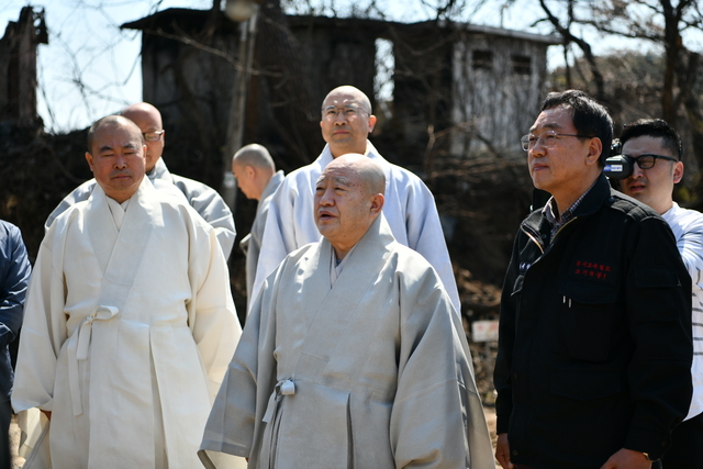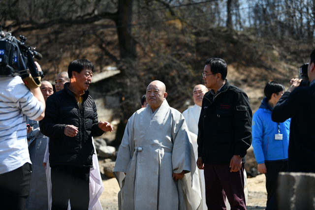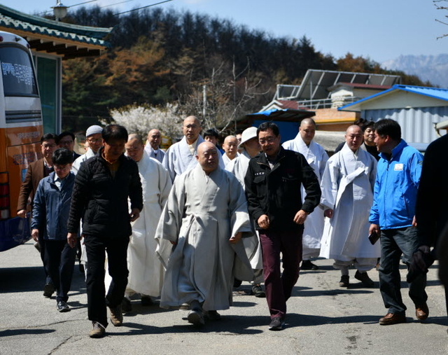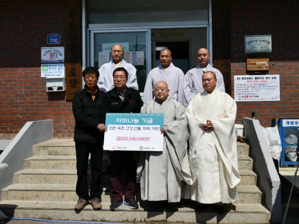 조계종 총무원장 원행스님, 속초 장천마을 방문 산불피해 성금 2억원 전달