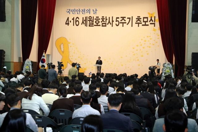 전라남도는 세월호 참사 5주기를 맞아 16일 오전 진도실내체육관에서 김영록 도지사, 윤영일 국회의원, 이동진 진도군수, 주민 등 550여 명이 참석한 가운데 추모식을 개최했다.