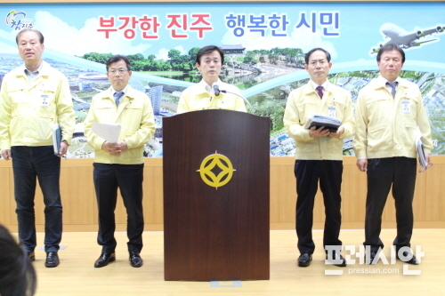▲조규일 진주시장이 17일 발생한 주거지 방화·흉기사고 후속 조치에 만전을 기하고, 피해자 긴급 지원 대책본부 구성·운영, 다양한 지원책 마련하겠다고 밝히고 있다.ⓒ프레시안 김동수