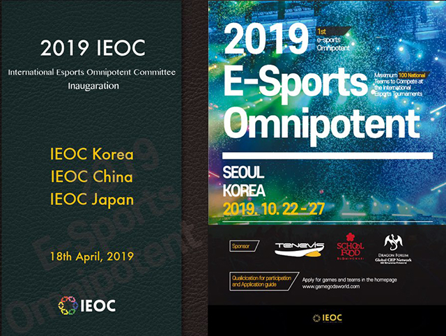 국제e스포츠옴니포텐트조직위원회(IEOC. International e-Sports Omnipotent Committee)가 주최하고 IEOC Korea, IEOC Japan, IEOC China이 공동주관으로 ‘제1회 국제e스포츠옴니포텐트대회조직위원회’ 출범식이 18일 오후 5시 서울 신라호텔에서 개최된다.
