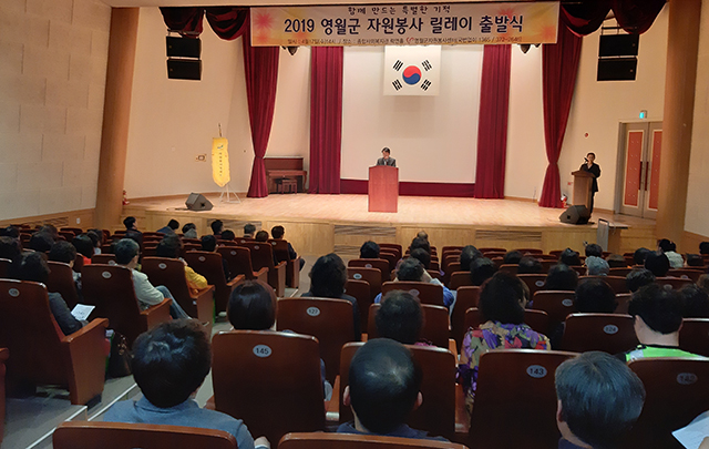 영월군자원봉사센터(센터장 조광희)는 지난 17일, 영월군종합사회복지관 락앤홀에서 자원봉사자 150여 명이 참석한 가운데 2019 자원봉사 릴레이 출발식을 가졌다.