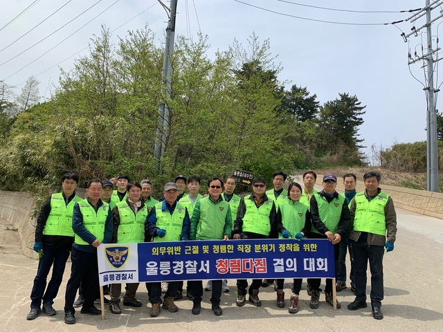 지난 19일 울릉도 저동 석포둘레길에서 경찰서장을 포함해 청렴동아리 회원 등 24명이 참석한 가운데 ‘청렴다짐 결의대회’ 를 실시한 후, 약 3킬로미터의 등산로를 청소했다.
