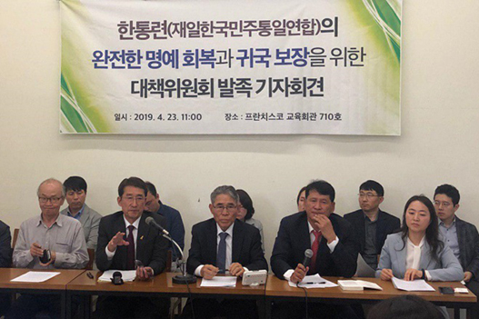 대책위는 기자회견을 통해 "대한민국에서 민주화 운동에 관여했던 인사들은 대통령, 장관, 국회의원도 되고 보상을 받기도 하였으나, 일본에서 우리와 함께 했던 한통련은 2019년 현재 여전히 반국가단체"라며 "보상은커녕, 손형근 한통련 의장 등 간부들에게 국가보안법 위반 혐의로 조사해야 한다고 으름장을 놓고 있고, 여권을 발급해주지 않아 고국에도 올 수 없고 다른 외국에도 왕래할 수 없게 하고 있다"고 했다.