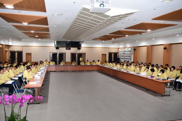 ▲ 김충섭 김천시장이 지난 23일 올해 상반기 공약추진현황 보고회를 주재하고 있다. ⓒ김천시