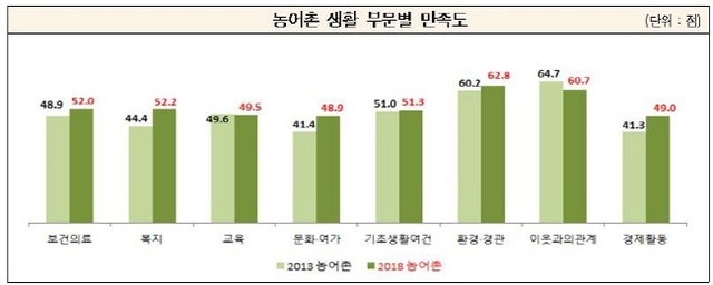이 자료에 따르면 농어촌 주민들이 느끼는 ‘복지’ 수준 만족도는 52.2점으로 5년 전보다 7.8점 높아졌다.