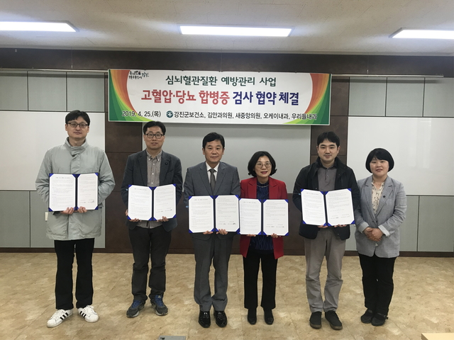 강진군은 25일 고혈압·당뇨 합병증 예방을 위해 관내 의료기관인 김안과의원, 새중앙의원, 오케이내과의원, 우리들내과의원과 합병증 검사비 지원사업 등 업무협약을 체결했다.