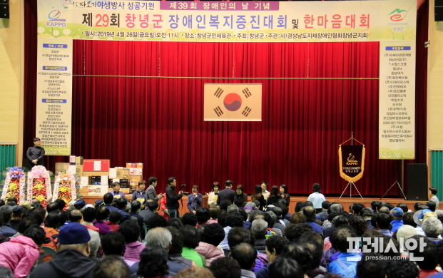 이날 장애인과 가족, 자원봉사자 등 1500여 명이 참석한 가운데 (사)경남지체장애인협회 창녕군지회가 주관해 한마음대회를 개최했다.