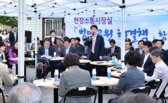 이날 행사는 권 시장이 내년 도시공원 일몰제 시행을 앞두고 있는 범어공원의 땅 주인과 인근 주민, 관할 지자체가 모여 서로의 입장을 듣고 해결책을 찾기 위해 마련됐다.