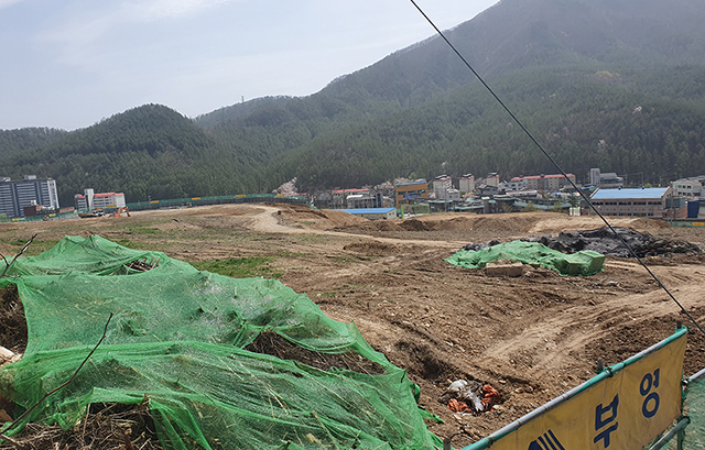 ▲1일 태백시 황지동 부영임대아파트 건립현장에는 1개월째 부지정리작업이 진행되고 있다. ⓒ프레시안