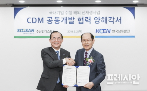 한국남동발전과 수산인더스트리는 지난 2일 서울시 강남구 수산인더스트리 본사 대강당에서 유향열 한국남동발전 사장, 정석현 수산인더스트리 회장 등 양사 관계자들이 참석한 가운데 수산인더스트리가 건설 중인 베트남 붕따우 태양광(70MW) 발전사업 온실가스배출권 확보를 위한 양해각서를 체결했다고 밝혔다.