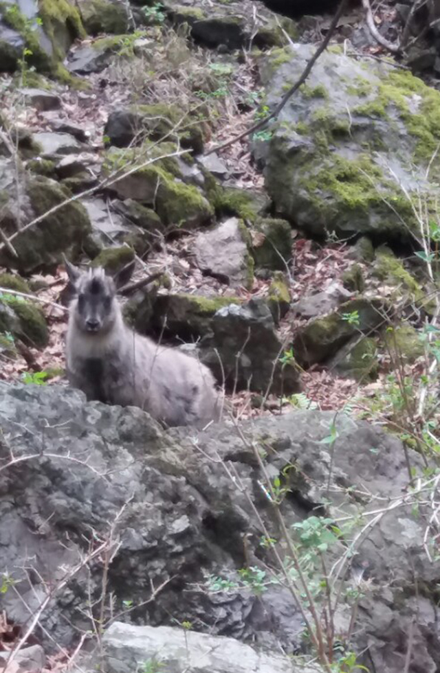 ▲천연기념물(제217호)이면서 환경부의 멸종위기 1급으로 지정된 산양이 지난 6일 태백산국립공원 유일사 인근 계곡에서 김강산 전 태백문화원장에 의해 발견되었다. 태백산 일대에서 산양이 목격된 것은 지난 2016년과 2018년에 이번이 3번째다. ⓒ독자제공
