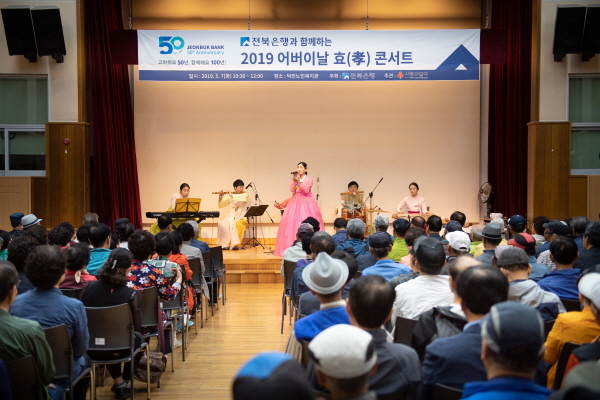 이날 전북은행은 행사장에 참석한 어르신 300여명에게 전북이벤트MC협회의 사회재능기부 및 레크레이션, 금융경제교육, 문화포럼 나니레의 퓨전국악공연, 기념품 전달 등을 통해 특별한 어버이날을 선물했다.