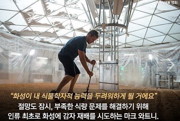 "2015년에 개봉한 SF 영화 마션(The Martian)을 보신 적이 있으신가요? 영화는 주인공이 화성에서 조난 후 감자 재배 등으로 구조대가 올 때까지 극적으로 살아가는 모습을 담고 있습니다.