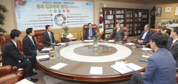 전라북도는 8일, 송하진 도지사와 도내 6개 경제단체(전주‧군산‧익산‧서남상의, 전북경총, 한국노총전북본부) 대표가 참석해 인구늘리기 민‧관 실천협약 제2호를 체결했다.