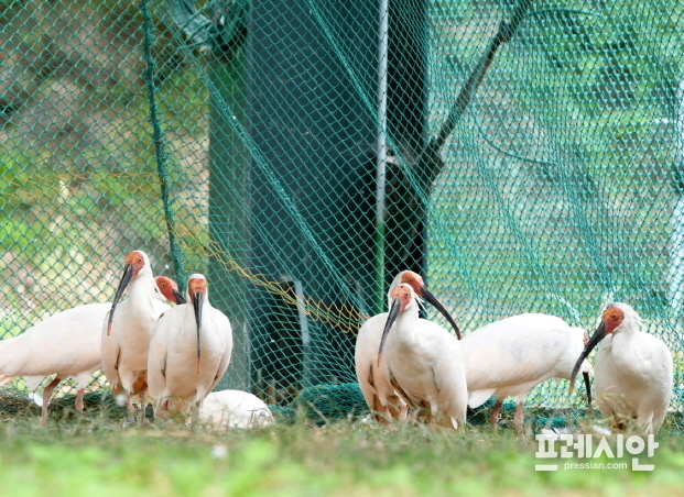 이들 따오기는 야생 방사를 위해 3개월가량 비행, 대인·대물 적응, 먹이 섭취 등 적응 훈련을 받았다.