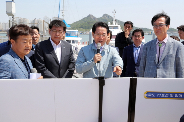 김영록 전라남도지사가 지난 9일 남해안 신 성장 관광벨트 조성사업 세 번째 현장투어로 신안 압해~해남 화원 간 국도 77호선 연결도로 구간의 주요 사업 현장을 찾았다.