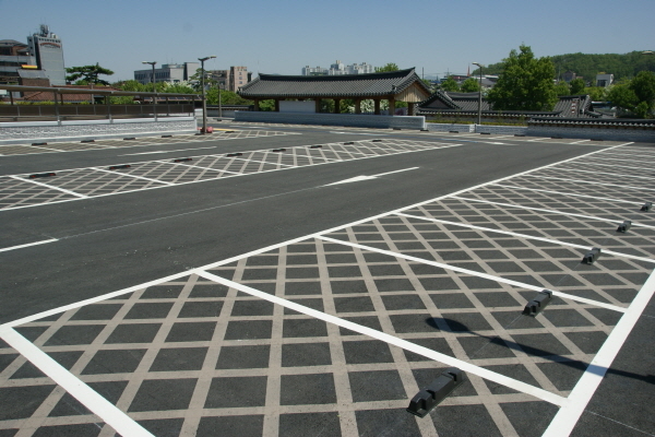 또, 주차면은 한옥 창살을 형상화한 빗살무늬 디자인으로 도색하고, 가장자리 여유 공간에는 와편 쌓기로 치장한 화단을 설치해 반송, 철쭉, 남천, 회양목, 측백, 능소화, 꽃잔디 등을 심었다.