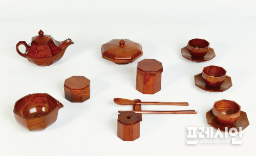▲제32회 진주시 공예품대전 대상 고판선 ‘목다구세트’. ⓒ진주시