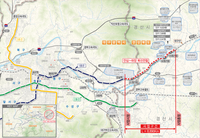▲ 대구 동구~경산 하양 대구도시철도 1호선 위치도ⓒ경북도
