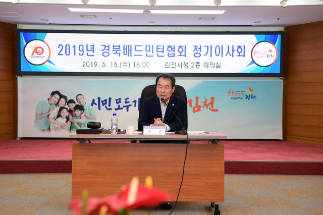 ▲김충섭 김천시장(경북배드민턴협회장)이 정기 이사회를 주재하고 있다. ⓒ김천시