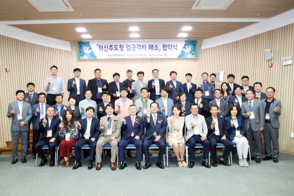 LX는 지난 16일 전북 군산베스트웨스턴 호텔에서 LX 최창학 사장, 동성장위원회 권기홍 위원장, 협력중소기업 김석구 대표 등 관계자 70여 명이 참석한 가운데 ‘혁신주도형 임금격차 해소' 협약을 체결했다고 17일 밝혔다.