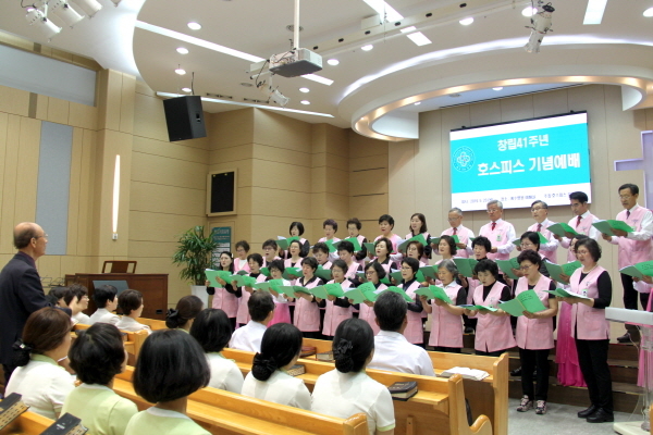 1978년에 창립돼 이날 41주년을 맞이한 예수병원 호스피스는 의사, 간호사, 목사, 사회복지사, 정신심리사, 영양사, 약사로 구성된 전문팀과 60명의 봉사자들이 어느 봉사활동보다 더 힘들고 어려운 환우의 임종 간호와 신체 간호 돌봄, 신체적 영적 지지, 사별 가족 관리, 가정 방문, 병실 찬양 등의 봉사활동을 펼치고 있다.