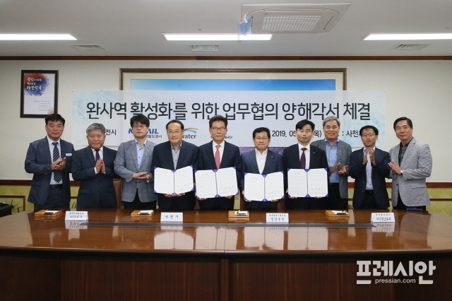 코레일 부산경남본부는 지난 23일 사천시 열린시장실에서 송도근 사천시장, 한국철도시설공단 영남본부 석호영 본부장, 한국수자원공사 남강지사 길준표 지사장과 ‘완사역 활성화를 위한 업무 협약’을 체결했다고 밝혔다.