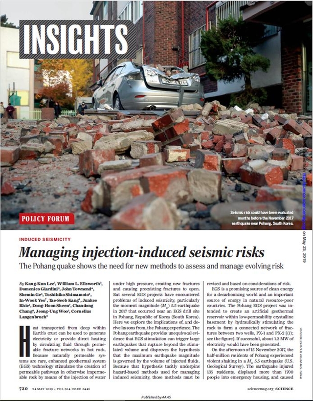 ‘유체주입으로 유발되는 지진 위험관리’라는 제목으로 실린 이 논문에는 포항지진의 성격, 의미, 교훈과 향후 지하에 유체주입으로 인한 지진 위험관리에 대한 내용으로 구성됐다. 이는 지난 2018년 4월 25일, ‘포항지진의 유발지진 가능성’에 대한 첫 논문이 게재된 후 약 1년 정도 지나 관련 논문이 다시 게재된 것.