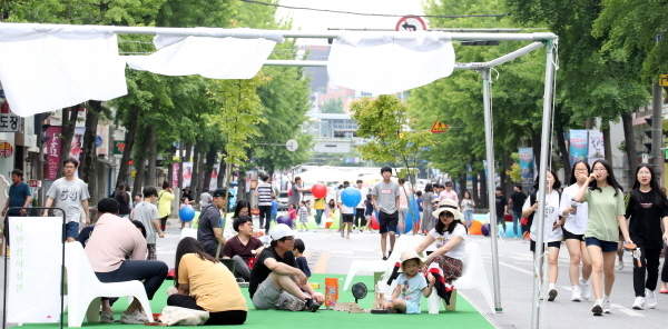 전주시는 25일 오후 2시부터 6시까지 충경로 사거리에서 다가교까지 600m 구간의 자동차 운행을 통제하고, 차가 비워진 도로를 사람과 문화로 채우는 ‘차 없는 사람의 거리’로 운영했다.
