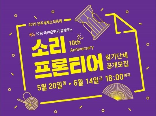 전북 전주세계소리축제(이하 소리축제)가 10주년을 맞는 'KB국민은행과 함께하는 소리프론티어' 참가 뮤지션을 모집한다.